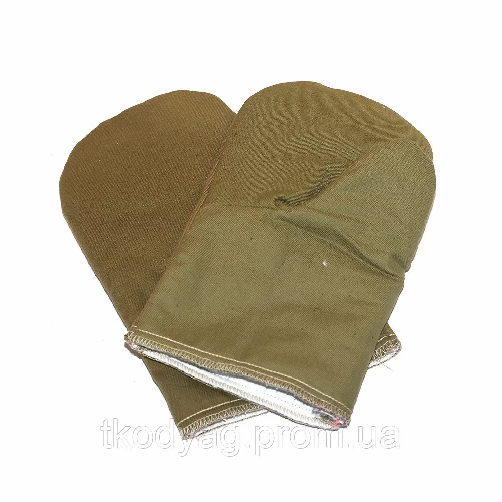 Верх рукавиц выполнен из плотной диагонали защитного цвета